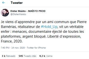 Je vous recommande vivement de prendre le temps de visionner, de comprendre, d’intégrer et de diffuser massivement la vidéo qui va suivre. Cette vidéo intitulée HOLD-UP, est un documentaire d’environ 02h50, qui traite de la « dictature sanitaire mondiale » que nous subissons tous de plein fouet.