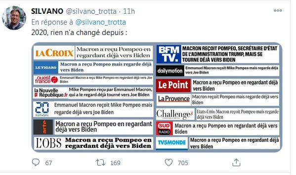 Vous voulez encore des exemples de la « liberté » de la presse? Oups,pardon de la pensée unique! Cela ne date pas d’hier, mais ça continue encore aujourd’hui!. (suivez le lien pour les tweets ci-dessous) https://twitter.com/silvano_trotta/status/1329725003286401024