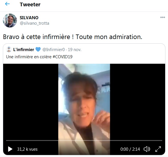 Voir aussi le message d’une infirmière en colère! Oui! Un grand Bravo au COURAGE à cette Dame! (cliquez sur l’image pour suivre le lien)